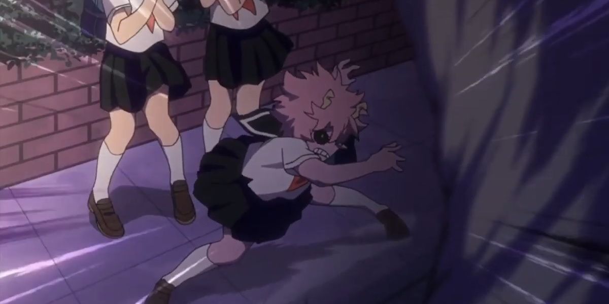 This is something that happened in one of Eijiro Kirishima's flashbacks, and it proved that even before going to UA, Mina had the spirit of a hero. A towering, scary guy confronted her and her friends, demanding to know where the local hero agency was.